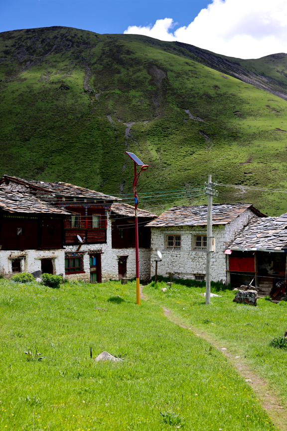 红白相间的藏房,整齐的玛尼石堆,五彩的经幡林,圆滚滚的土拨鼠,这里仿佛是一个与世隔绝的桃源!