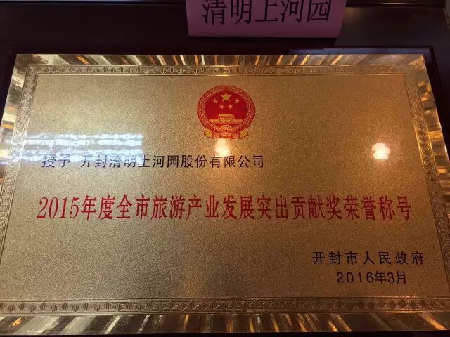 今天上午,全市旅游工作会议在开封市政府召开。会议上,清明上河园景区获得2015年度全市旅游产业发展突出贡献奖荣誉称号,清明上河园总经理周旭东上台领奖。