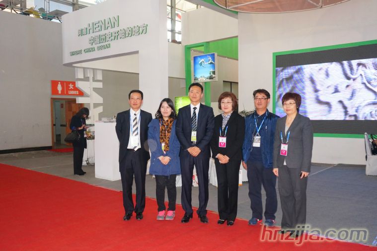 河南省旅游局领导与韩国客商在河南展位前合影