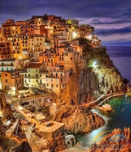 灯火辉煌的五乡地小镇,利古里亚——意大利
